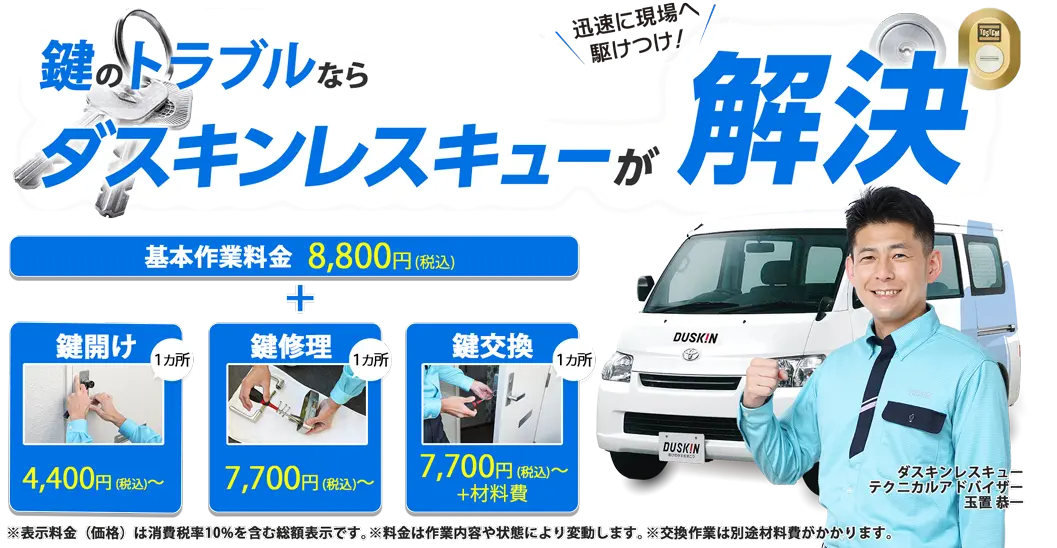 鍵屋さんならダスキンにおまかせ! 出張見積無料で安心!
